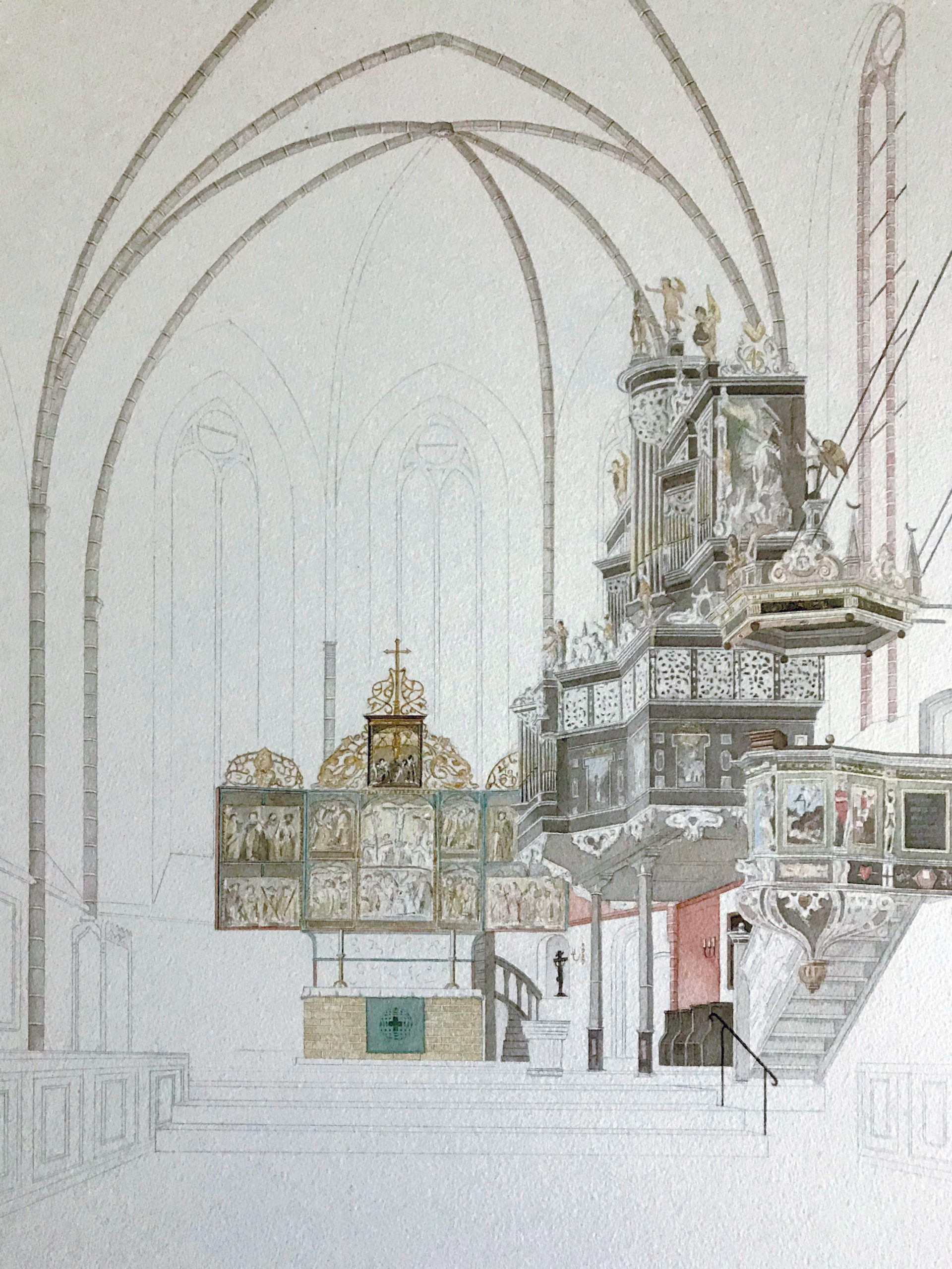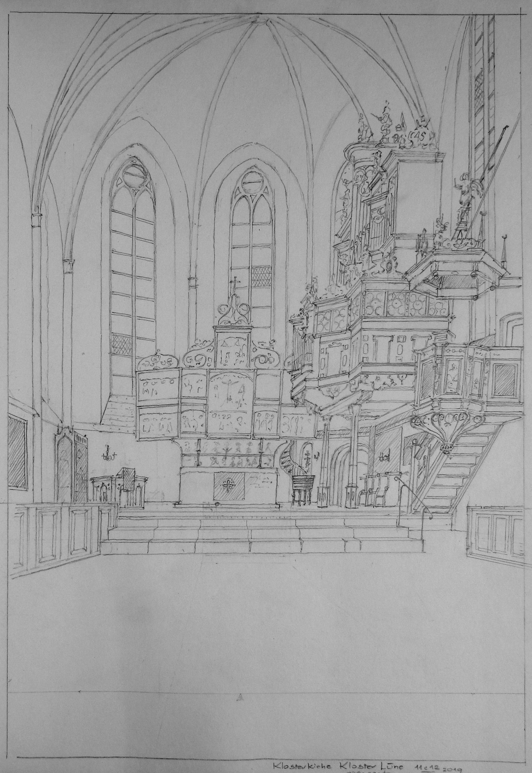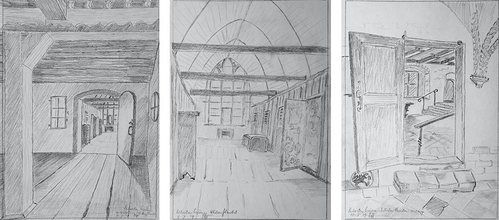 Für Marianne und mich war es eine Freude, im Juli 2019 im Kloster zu Gast zu sein. Diese vier Aquarelle sind das Ergebnis einer Skizzenwoche im Kloster Lüne als Artists in Residence. Ich skizzierte diese Bilder an vier aufeinander folgenden Tagen und habe sie zu Hause in meinem Atelier zum Aquarell ausgearbeitet.